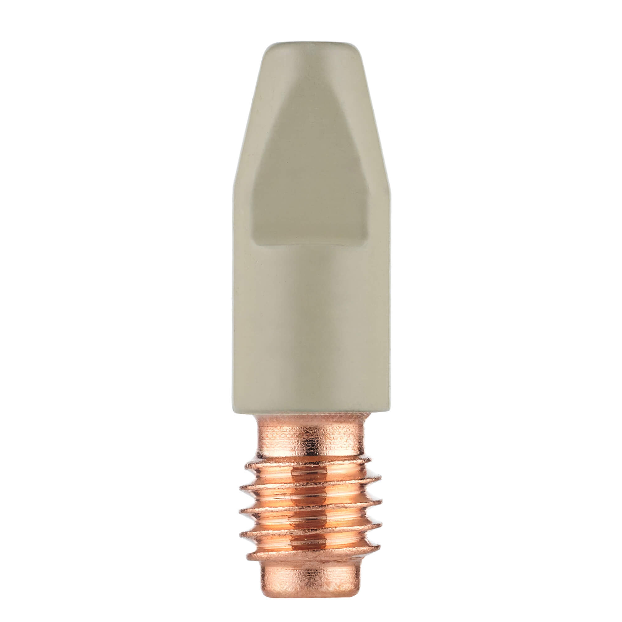 Сварочный наконечник M8 с керамическим покрытием для полуавтоматических горелок всех серий MIG MP 26, 36, 400, 450 и 500. Используется для проволоки диаметром 1,2 мм.Наконечник изготовлен из меди (E-CU), сверху нанесён керамический слой, который работает как электрический и термический изолятор поверхности.Керамическое покрытие наносится специальным технологическим процессом, образуется гомогенный ровный слой, рассчитанный на промышленную эксплуатацию такого газораспределительного сопла. Керамический слой состоит из броннитрида (бор нитрид, BN).Отличительная особенность стандартного наконечника CRM8010-12 – это керамическое покрытие:Керамическое покрытие создаёт термобарьер, так как керамика выдерживает очень высокие температуры, не расплавляется и не деформируется.Покрытие препятствует прилипанию сварочных брызг за счёт очень гладкой поверхности. Брызги либо отскакивают, либо слабо держатся и легко счищаются.Из-за отсутствия налипших брызг металла формируется более стабильный газовый поток и дуга. Увеличивается продолжительность работ без остановки и последующей очистки комплектующих.Керамический слой заметно увеличивает ресурс наконечника. Использование комплектующих с керамическим покрытием снижает затраты на обслуживание и расходные материалы.Область применения наконечников с керамическим покрытием:Узкощелевое сваривание труб, толстых стенок. Орбитальная сварка, где сопло или наконечник может задеть стенку свариваемого изделия. В таком случае керамическое покрытие выступает в роли диэлектрика, защищает от коротких замыканий, снижает риск «поджигания» дуги по боковой стенке и медных включений в металл шва.Сварка порошковой проволокой, где нужно увеличить токи и скорость без потери качества корня.Автоматизированные линии и роботизация, где критичны длительные остановки рабочего процесса и присутствует минимальное обслуживание сварочных горелок.