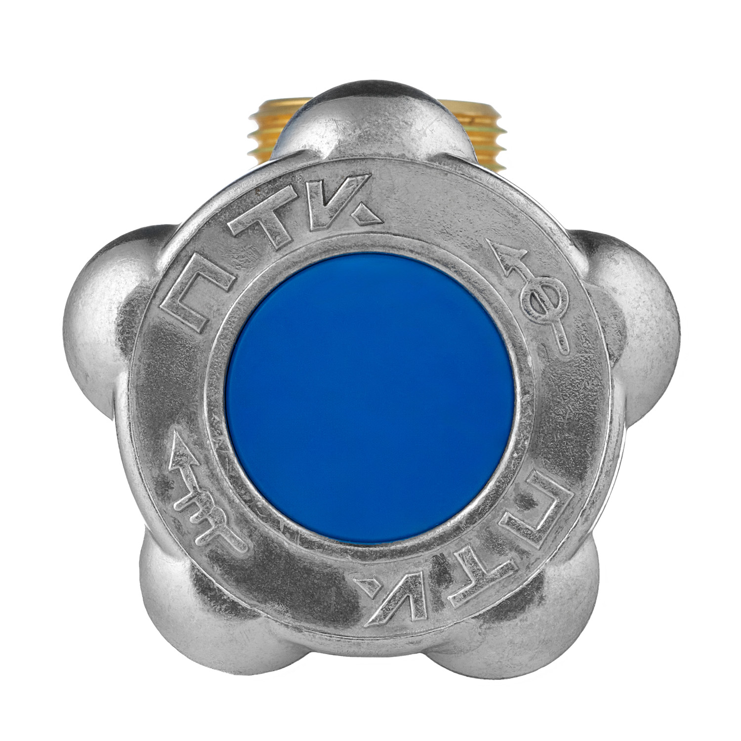 Вентиль баллонный ПТК ВК-94 (исполнение 10) используется как запорное устройство для предотвращения утечки газа и регулировки подачи кислорода. Также может применяться для баллонов со сжатым воздухом, азотом и другими неагрессивными газами.Рекомендуется для кислородных баллонов объёмом 5–40 литров с рабочим давлением до 20 МПа (200 кгс/см²).Корпус вентиля выполнен из латуни, маховик - из алюминия. Присоединительная резьба для установки на баллон - цилиндрическая G3/4 по ГОСТ 9909. Резьба шпинделя обработана кислородостойкой смазкой ВНИИНП-283, обеспечивая высокую герметичность.Конструкция вентиля предусматривает применение гибкой мембраны, что гарантирует абсолютную герметичность при любом положении клапана и длительный срок службы изделия.Комплектация:Вентиль кислородный ВК-94 исп. 10 в сборе – 1 шт.Руководство по эксплуатации – 1 шт.